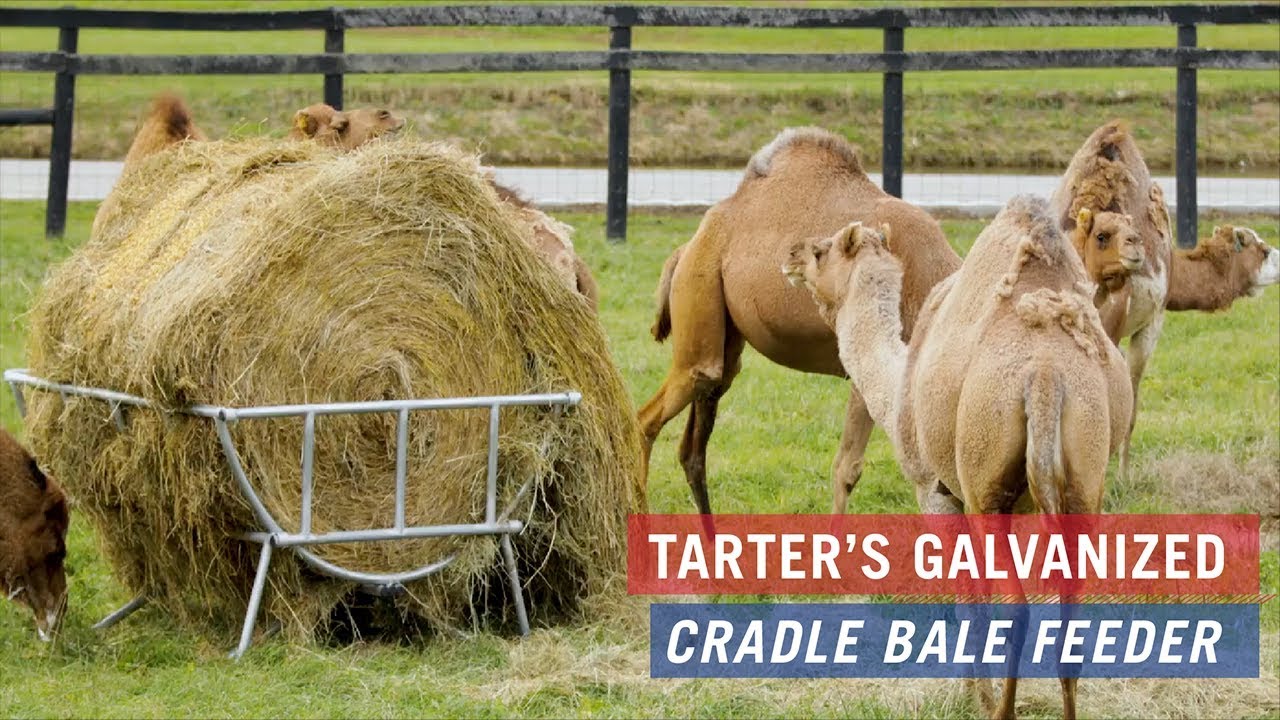 The Galvanized Cradle Bale Feeder is an “all-access pass” feeding solution for most livestock. The Cradle Bale Feeder is safe for small animals and will save you money. Its unique design keeps round hay bales off the ground and reduces moisture build-up. This helps your hay last longer and reduces your feeding costs.